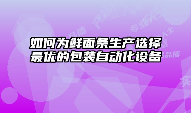 為鮮面條生產選擇蕞優的包裝自動化設備指南鮮面條作為中國傳統的食品,近年...