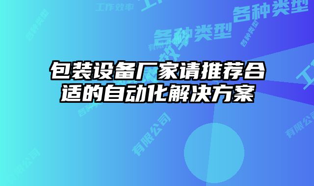 包裝設(shè)備廠家請(qǐng)推薦合適的自動(dòng)化解決方案