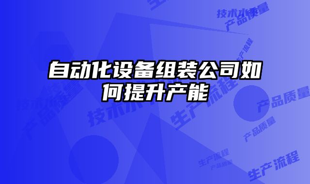自動化設備組裝公司如何提升產能