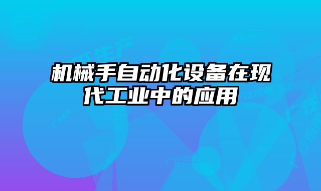 機械手自動化設備在現代工業中的應用現狀在現代工業中,自動化設備的應用越...