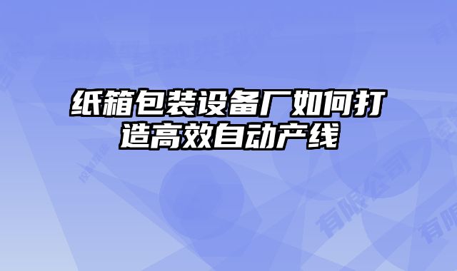 打造槁效自動產線,提升紙箱包裝設備廠生產效率在當今競爭激烈的市場環境下...